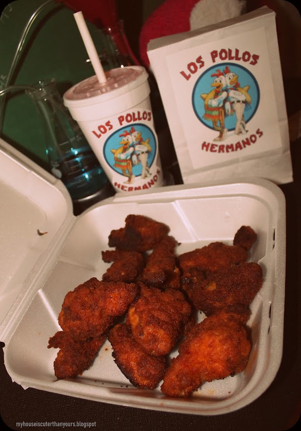 For his cake I went with a huge raw steak made out of white fondant and red candy melts. I tried to make the interior part of the cake look marbled by dying some of the white cake mix with red food coloring and gently folding it together but it didn't look all that impressive so I didn't take a photo.